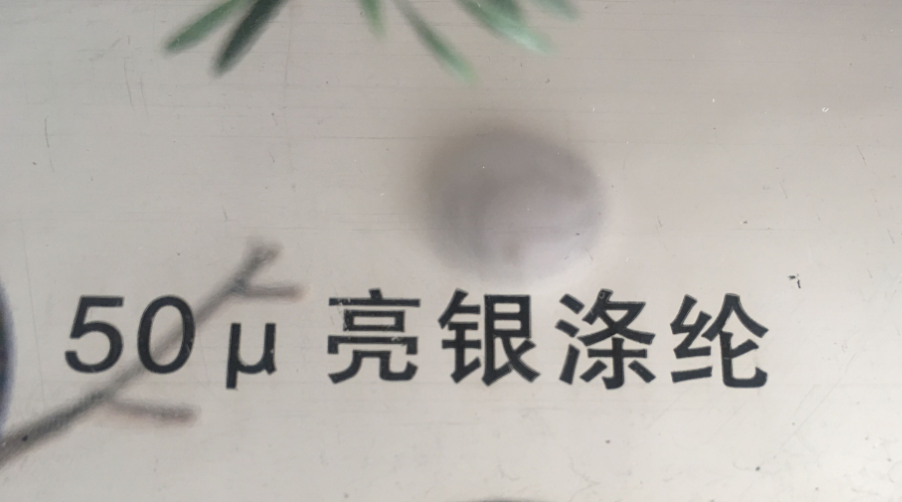 亮银涤纶不干胶,面纸 :50u亮银PET膜。底纸:140 克白底纸,白牛皮底;